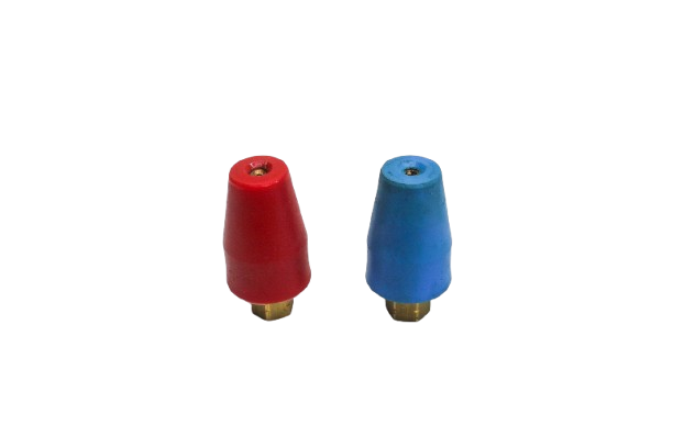 Half inch inlet 5800 psi, 210 degrees Fahrenheit max temp. Red is 8 gpm, blue is 10 gpm, orange (not displayed) is 6 gpm. Runs a ball bearing instead of a honey comb which allows this nozzle to be started in any direction you prefer.